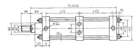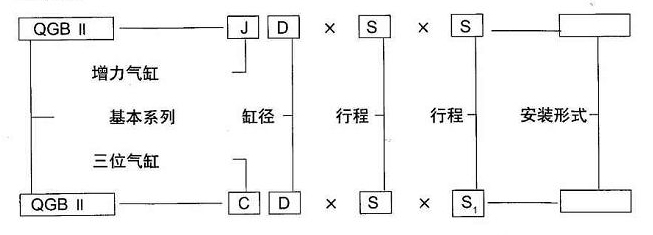 兩種均為QGB||系列相同缸徑的氣缸串聯(lián)而成的雙活塞氣缸,兩活塞運(yùn)動方向相同。QGB||—J系列為增力氣缸,前后兩活塞桿聯(lián)為一體,其桿端出力為單活塞推、拉力之和,拉力為單活塞拉力二倍。此產(chǎn)品也可作為氣液阻尼氣缸應(yīng)用。QGB||—C系列為三位氣缸前后兩活塞桿單獨(dú)分開。當(dāng)前缸行程(S)大于后缸行程(S1)時,前端活塞桿頭有三個位置。